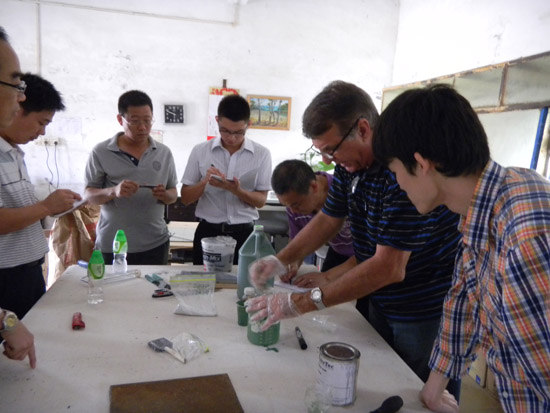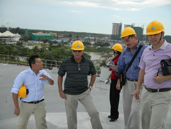 考察團一行先后參觀考察了青龍海南國際會展中心工地、青龍廣西公司、青龍中山公司總部、青龍廣西保溫砂漿生產(chǎn)基地、青龍中山涂料生產(chǎn)基地、青龍中山GRC生產(chǎn)工地、青龍研發(fā)中心(廣西、中山兩處)等。格雷先生對我公司的設(shè)備和產(chǎn)品給予了肯定,并對我公司拓展國外的業(yè)務(wù)提出了寶貴的意見,表示青龍完全有實力開一條生產(chǎn)線生產(chǎn)美國研發(fā)的這種新特材料,并當(dāng)場簽訂了代理協(xié)議,就合作項目交換了意見,目前雙方公司正在積極籌辦中。