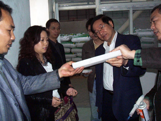 3月31日上午,南寧市科技局黨組副書記、副局長施居府,在青龍公司、科技局有關領導的陪同下,深入到我公司生產(chǎn)基地——廣西青龍化學建材有限公司(市隆安華僑經(jīng)濟開發(fā)區(qū)),就我公司的PVA-ECC高韌性纖維水泥基復合材料產(chǎn)品的研發(fā)與產(chǎn)業(yè)化項目進行實地調(diào)研。