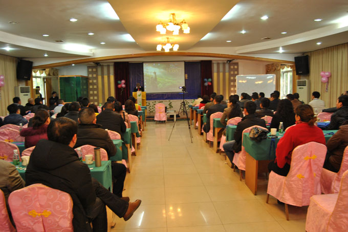 1月16日上午9點,代理商年會正式開始,公司董事長宋敦清先生致歡迎詞。宋董對來自全國各地的代理商們的到來表示了熱烈的歡迎,并對公司2013年的工作進(jìn)行了部署。他指出,2013年公司將在三個方面開展工作,一是生產(chǎn)基地的升級換代、布點工作和解決相關(guān)物流的配送工作,二是進(jìn)一步完善和改善生產(chǎn)工藝,三是堅持以技術(shù)推廣會為會議營銷的龍頭,以電子商務(wù)為主的線上營銷與傳統(tǒng)的線下營銷方式相結(jié)合的營銷準(zhǔn)則,幫助更多的客戶了解青龍品牌和“