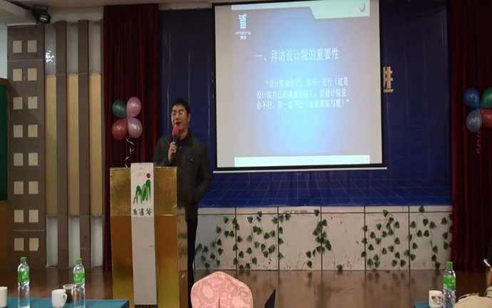 會議還邀請來楊進(jìn)舟先生作了“如何拜訪設(shè)計院”的專題講座,分享他跑設(shè)計院的心得以及注意事項。楊總從他自己的經(jīng)歷出發(fā),講述拜訪設(shè)計院的重要性,并詳細(xì)地解說了設(shè)計院設(shè)計業(yè)務(wù)的流程,找出建材行業(yè)與他們業(yè)務(wù)的契合點。之后,楊總還為代理商們出謀劃策,講述如何建設(shè)設(shè)計院推廣團(tuán)隊,如何進(jìn)行業(yè)務(wù)員的培訓(xùn),如何制定和實施工作計劃以及考核等問題。
