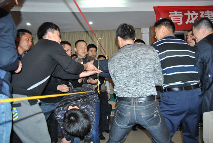 下午進(jìn)行了精彩的拓展活動,包括共建藍(lán)圖、解碼行動、戰(zhàn)國風(fēng)云七巧板、好的黑洞等項目。與會的代理商們分成六個小組,每個小組之間進(jìn)行PK,以考驗代理商們的團(tuán)隊協(xié)作、溝通交流、組織策劃等綜合能力。最觸動人心的是好的黑洞的項目,在這個項目中,所有的代理商們在總指揮的組織下,有秩序地穿越“電網(wǎng)”,雖然中途因為一些隊員不小心觸網(wǎng)而導(dǎo)致整個團(tuán)隊重新穿越“電網(wǎng)”,但最終在所有代理商們的共同協(xié)作下,團(tuán)隊取得了“勝利”。在隨后的分享中,不少的代理商都表示深受觸動,“很震撼,會用新的一面去對待這個事情”,“個人的力量是無法生存的,只有團(tuán)隊的力量才能生存”。