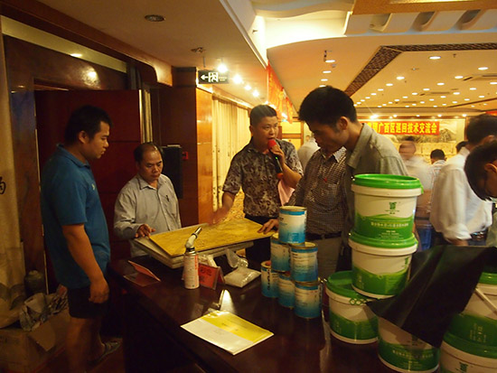 在近3個小時的推廣會中,廣西青龍中區(qū)域經理黎世鷹以廣西玉林的建材市場的現(xiàn)狀為例,為大家解析了建材行業(yè)未來的發(fā)展前景,并就青龍建材公司“一個品牌,四門生意”的招商加盟政策做了詳細的介紹。青龍集團防水保溫技術總工程師徐新生則深入地剖析了青龍牌新的型反應交叉膜自粘防水卷材、防水涂料(青龍牌防水密封涂料)、EVB高強保溫隔熱板等產品的特點及應用,幫助與會者更好地了解青龍建材的主推產品。而廣西青龍GRC技術工程師李運旺為參會者進行講解GRC歐式構件生產、技術、認識誤區(qū)、前景等內容。此次技術交流會全面、深刻,使得參會者對青龍企業(yè),招商計劃,產品技術等問題有了進一步的了解,也受到了在場人員的贊賞。
