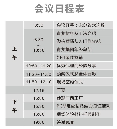本次會(huì)議的對(duì)象為青龍集團(tuán)全國(guó)各地的工程代理商、家裝商代表、優(yōu)秀項(xiàng)目經(jīng)理、準(zhǔn)客戶。
