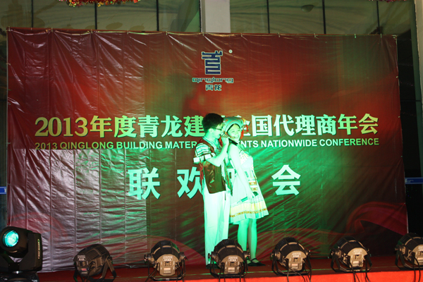 2014年1月7日,由青龍集團(tuán)舉辦的“整合,分享,共贏”2013年度青龍建材全國代理商在廣西南寧隆重召開,來自全國各地150余人青龍代理商和意向客戶,齊聚一堂,共享紅色財(cái)富,共贏廣闊未來。在開完白天的年會(huì)之后,晚上,青龍集團(tuán)為代理商朋友舉辦了盛大的晚宴。晚宴期間青龍員工編排了豐富多樣,生動(dòng)活潑的文藝匯演,讓代理商朋友們不僅嘆服于青龍化學(xué)建材強(qiáng)大的品牌加盟政策,也折服于青龍優(yōu)秀的企業(yè)文化。