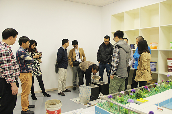 碧桂園考察團(tuán)現(xiàn)場(chǎng)觀察防水材料施工