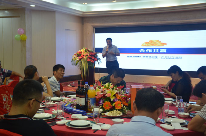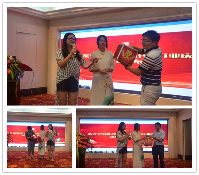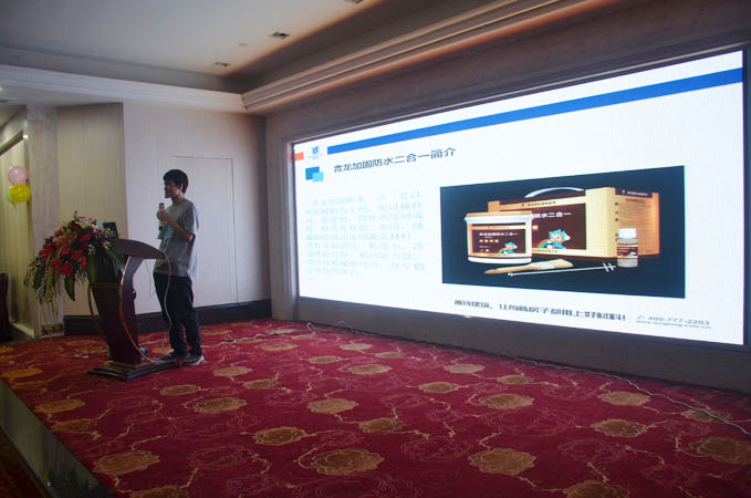 在答謝午宴上,賓客滿席,董老板、青龍營(yíng)銷(xiāo)總監(jiān)賀總、青龍家裝營(yíng)銷(xiāo)于總、青龍質(zhì)量總監(jiān)張總和專(zhuān)賣(mài)店技術(shù)工程師周工分別上臺(tái)進(jìn)行了分享。午宴中還穿插了精彩的文藝節(jié)目和豐富的活動(dòng),將現(xiàn)場(chǎng)氛圍推向高潮。廣大來(lái)賓在一片歡聲笑語(yǔ)中,不僅學(xué)習(xí)了更多的創(chuàng)業(yè)經(jīng)驗(yàn)和防水知識(shí),也拓展了人際網(wǎng)絡(luò),愉快地度過(guò)了這個(gè)美好的正午。