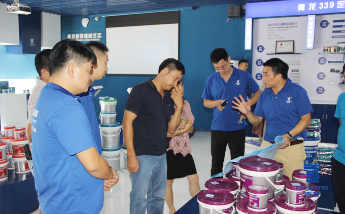 青龍博士團(tuán)隊(duì)防水工程師高東偉,詳細(xì)講解了青龍339定制防水系統(tǒng)及核心理念、特色維修補(bǔ)漏產(chǎn)品,讓客人對(duì)青龍家居防水產(chǎn)品有了總體的了解。同時(shí)通過(guò)和市場(chǎng)上同類防水材料的對(duì)比,不僅增強(qiáng)了客人對(duì)公司防水材料、青龍品牌的信任和信心,也提升了客人防水理論水平和解決滲漏問(wèn)題的實(shí)踐能力。