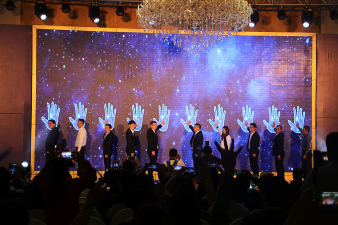▲宋敦清董事長等十位嘉賓在液晶大屏上按下手印,正式啟動(dòng)狂歡節(jié)。