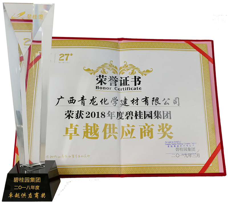 3月,在碧桂園集團(tuán)2018年度供應(yīng)商大會(huì)上,青龍公司憑借過(guò)硬的產(chǎn)品質(zhì)量和良好的企業(yè)服務(wù)體系,喜獲2018年度"卓越供應(yīng)商獎(jiǎng)"稱號(hào)。