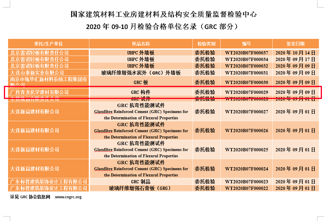 此次我司GRC構(gòu)件成功通過國家質(zhì)量監(jiān)督檢驗(yàn)中心檢測,是業(yè)界及國家對我司技術(shù)、管理、質(zhì)量提升與創(chuàng)新的充分肯定;青龍產(chǎn)品質(zhì)量是杠杠滴!23年的老品牌,放心的好品牌!