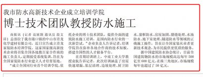 【中山商報報道】我市防水高新技術(shù)企業(yè)成立培訓(xùn)學(xué)院 博士技術(shù)團隊教授防水施工