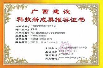 青龍建材兩款防水卷材獲廣西科技新成果推薦證書