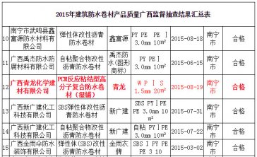 廣西質(zhì)監(jiān)局公布2015年建筑防水卷材抽檢公告,青龍防水卷材合格達(dá)標(biāo)