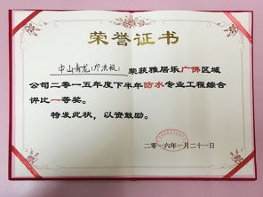 青龍防水材料質(zhì)量可靠,鄺洪根團(tuán)隊(duì)榮獲雅居樂防水工程綜合評比一等獎