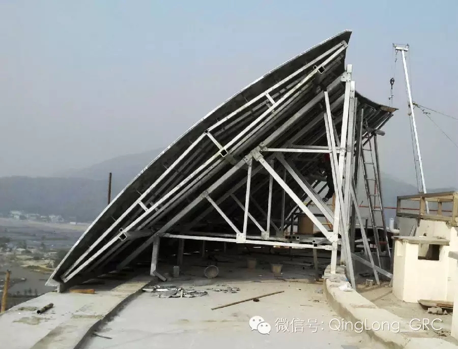 千億房企保利地產(chǎn)開發(fā)的海南保利半島1號項目,占地面積余畝,位于全球旅游熱點坐標(biāo)--中國·海南。青龍公司獨立承接了半島1號的GRC異型雙曲面板的制作和安裝分項工程。使用了25mm厚度灰水泥基質(zhì)幕墻造型板,邊上厚度達(dá)30mm。采用面積12000m²,內(nèi)置結(jié)構(gòu)鋼架和背負(fù)鋼架,最大規(guī)格L6000mm X W3000mm,一般體育館和港口及造型屋面使用較多,其紐帶型GRC屋面,可以實現(xiàn)設(shè)計師的設(shè)計靈感。