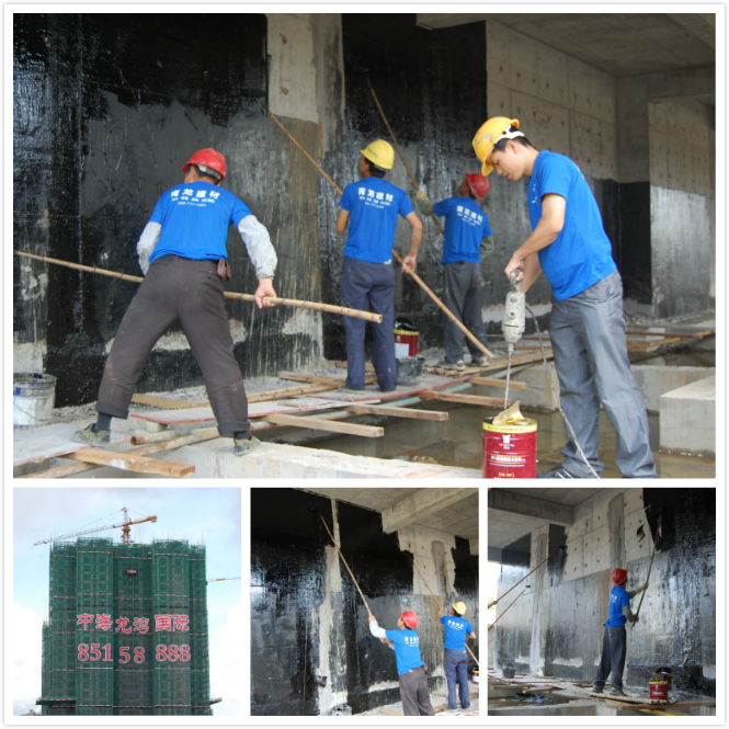 龍灣國際項目防水面積達5萬㎡,施工部位為地下室剪力墻與頂板,采用了青龍911聚氨酯防水涂料(CQ107)與聚乙烯丙綸,由于連續(xù)降雨,地下室長期處于浸水狀態(tài),給施工帶來了一定難度,但青龍人認真對待每一施工細節(jié),保證工期內(nèi)圓滿完成,目前地下室防水已經(jīng)接近尾聲,獲得了甲方的一致認可。