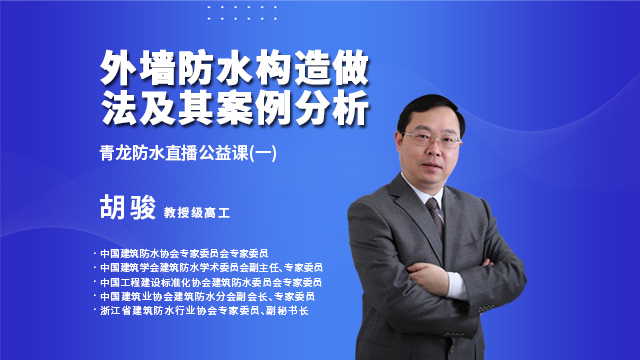 胡駿教授是資深的防水行業(yè)知名專家,他不僅擁有扎實的專業(yè)能力,并且都親身參與過多起國內(nèi)重點防水工程,實戰(zhàn)能力過硬。今晚他將為大家?guī)?外墻防水構造做法及其案例分析"的課題,從外墻構造形式、外墻防水構造做法等最基本的防水知識入手,幫助大家詳細了解外墻防水原理、使用材料和施工細節(jié),最后以具體的案例分析介紹其中的成功得失,幫助我們在以后的防水補漏工程中規(guī)避那些不規(guī)范的做法。