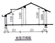 單(多)層建筑物的坡屋頂內(nèi)空間,當(dāng)設(shè)計(jì)加以利用時(shí),其凈高超過2.1m的部位應(yīng)計(jì)算全面積;凈高在1.2m至2.1m的部位應(yīng)計(jì)算1/2面積;凈高不足1.2m的部位不應(yīng)計(jì)算面積。設(shè)計(jì)不利用時(shí)不應(yīng)計(jì)算面積。這里我將這種算法簡稱為“凈高界限計(jì)算法”。凈高是指樓面或地面至上部樓板(屋面板)底或吊頂?shù)酌嬷g的垂直距離。如圖2:第(1)部分凈高<1.2m,不計(jì)算面積;第(2)、(4)部分1.2m≤凈高≤2.1m,計(jì)算1/2面積;第(3)部分凈高>2.1m,應(yīng)全部計(jì)算面積。