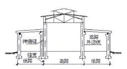 高低聯(lián)跨的建筑物應(yīng)以高跨結(jié)構(gòu)外邊線為界分別計(jì)算建筑面積;其高低跨內(nèi)部連通時(shí),其變形縫應(yīng)計(jì)算在低跨部分的面積內(nèi)。(圖4)