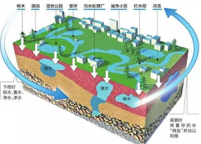(1)海棉城市,是新一代城市雨洪管理概念,是指城市在適應(yīng)環(huán)境變化和應(yīng)對(duì)雨水帶來的自然災(zāi)害等方面具有良好的"彈性",也可稱之為"水彈性城市",國(guó)際通用術(shù)語為"低影響開發(fā)雨水系統(tǒng)構(gòu)建"。下雨時(shí)吸水、蓄水、滲水、凈水,需要的時(shí)候?qū)?chǔ)蓄的雨水"釋放"并加以利用。國(guó)務(wù)院辦公廳出臺(tái)"關(guān)于推進(jìn)海綿城市建設(shè)的指導(dǎo)意見"指出,采用滲、滯、蓄、凈、用、排等措施,將70%的降的就地消納和利用。