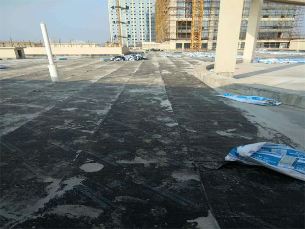 3、雨淋:卷材具有一定吸水性,施工時(shí)要求卷材表面干燥,受潮施工后會(huì)造成起鼓、粘結(jié)不良現(xiàn)象。