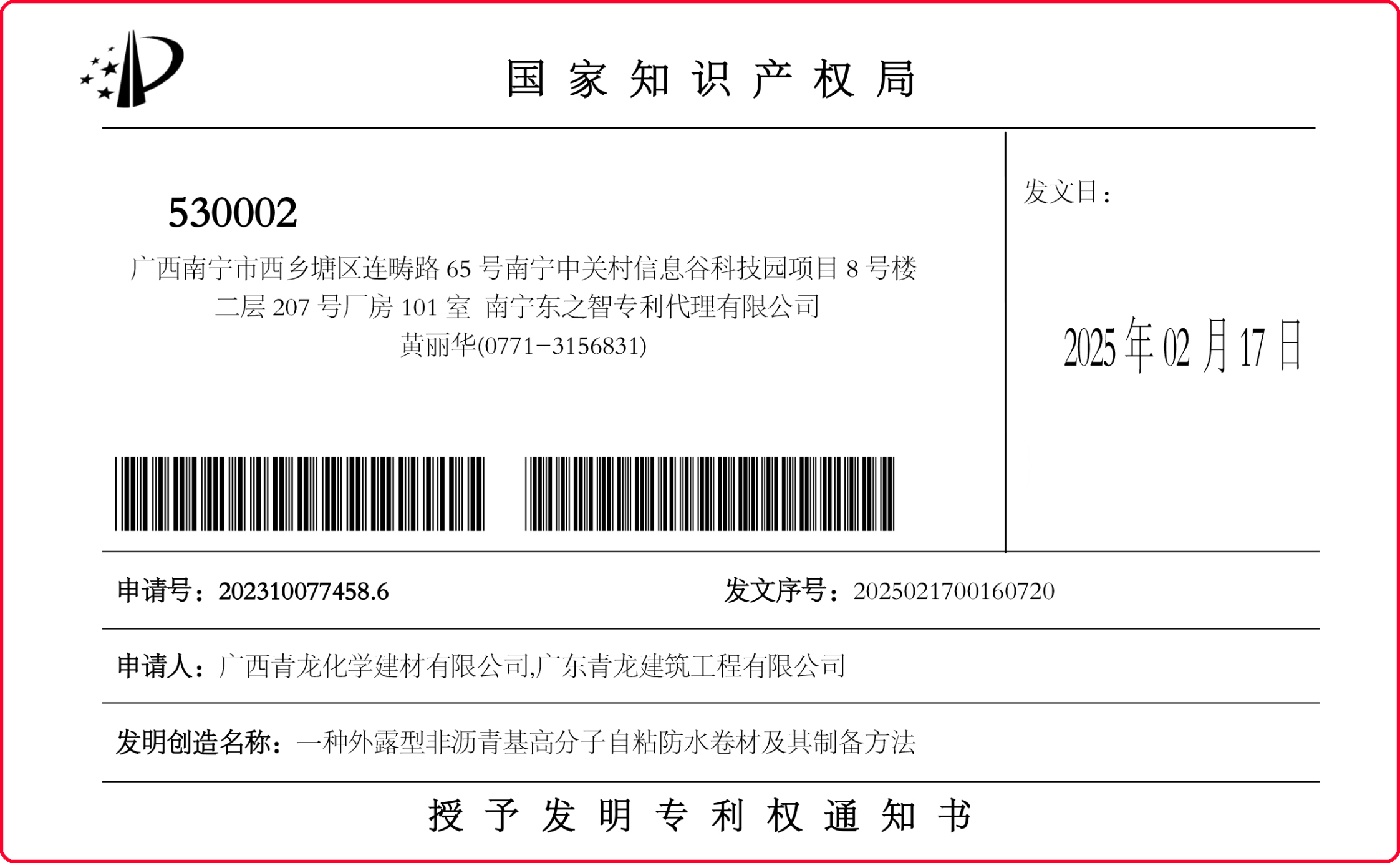 最新消息!青龍新專(zhuān)利來(lái)了,讓你的防水工程放心無(wú)憂(yōu)