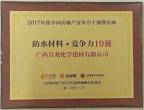 熱烈慶祝青龍入選2017年度中國(guó)房地產(chǎn)防水材料類競(jìng)爭(zhēng)力供應(yīng)商
