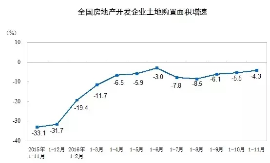 1-11月份,房地產(chǎn)開發(fā)企業(yè)土地購置面積19046萬平方米,同比下降4.3%,土地成交價(jià)款7777億元,增長21.4%。